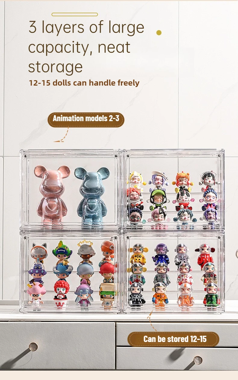 Display and protect your collection with this fully transparent, foldable acrylic display Organizer —ideal for figurines, action figures, and blind box dolls. Made from high-quality acrylic, it offers a full, unobstructed view of your items, allowing your collection to shine. The case features anti-dust, anti-insect, and anti-oxidation properties to keep your valuables safe. With a magnetic gate for easy access and a stackable, modular design, this case is both stylish and functional, designed to fit seamlessly into any collector's setup.