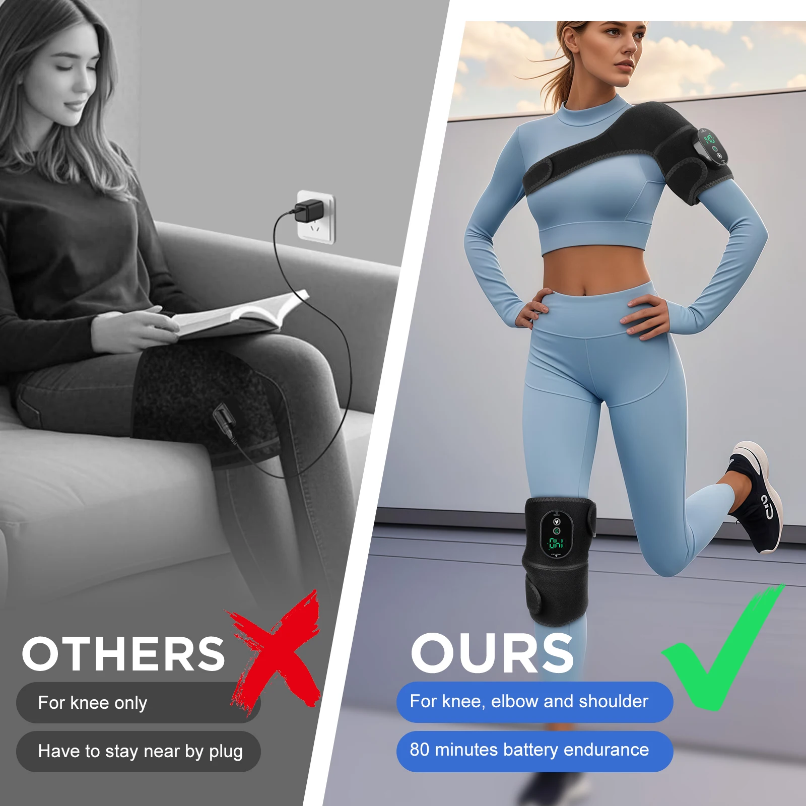 Electric Cordless Thermal Knee Pad Brace Massager 3 in 1 for Shoulder Elbow Joint Care Knee Support Muscle Relax Hot Compress