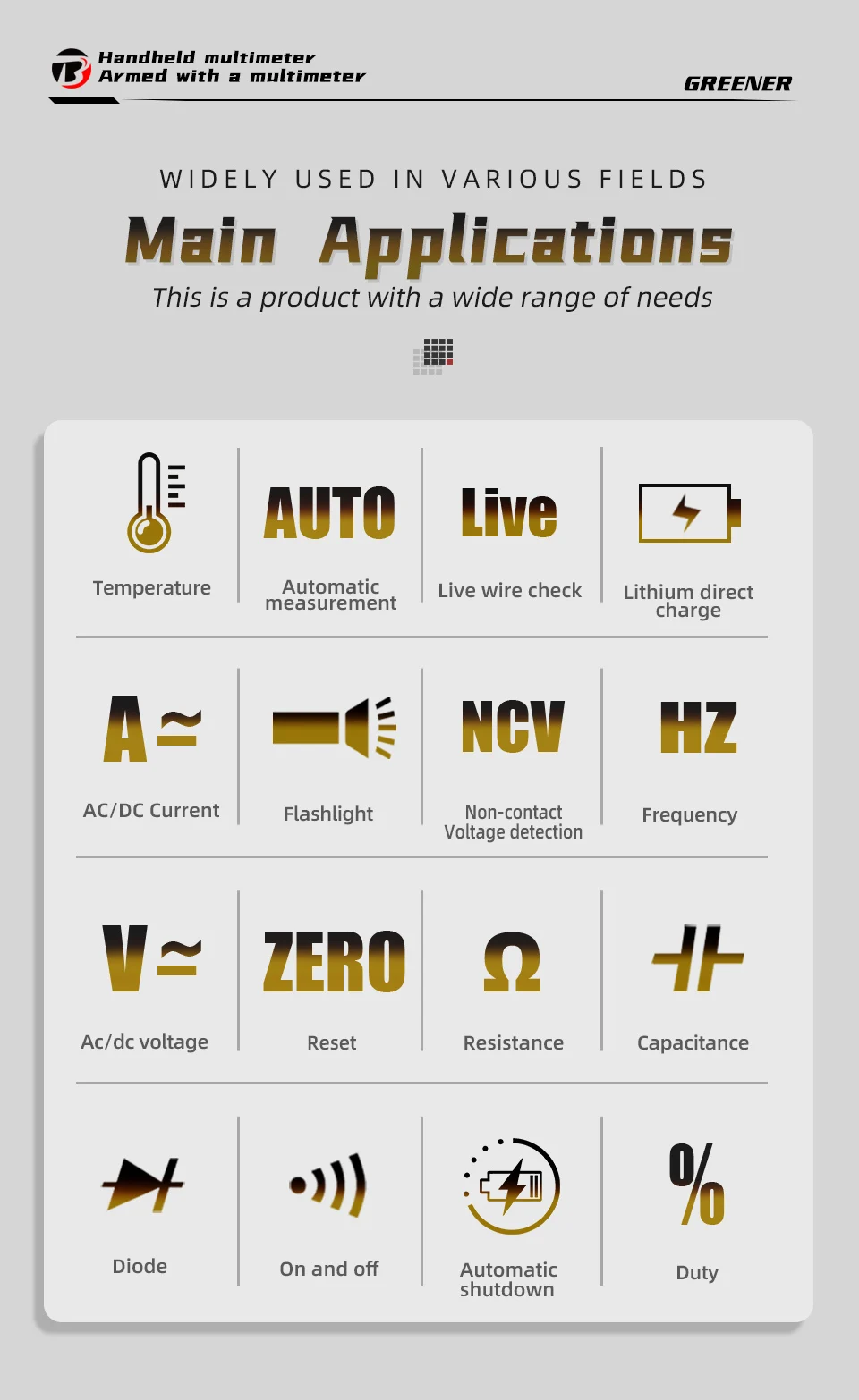 5. Support voltage/resistance/on/off automatic identification